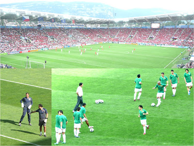 na quarta feira foi dia de ir a Geneve apoiar a selecção (beber umas cervejas, comer umas bifanas e por ai fora). O jogo foi bem intenso, a constante obrigação de apoiar a nossa selecção fez com que me esquecesse de telefonar para vos fazer sentir o som por vezes ensurdecedor do estádio... seriam metade portugueses metade checos, os checos do lado de lá os portugueses do lado de cá, alternadamente a gritarem à desgarrada... sempre que os gritos de uns se faziam ouvir por 15 20 segundos vinham os outros tentar mostrar que o conseguiam fazer mais alto...